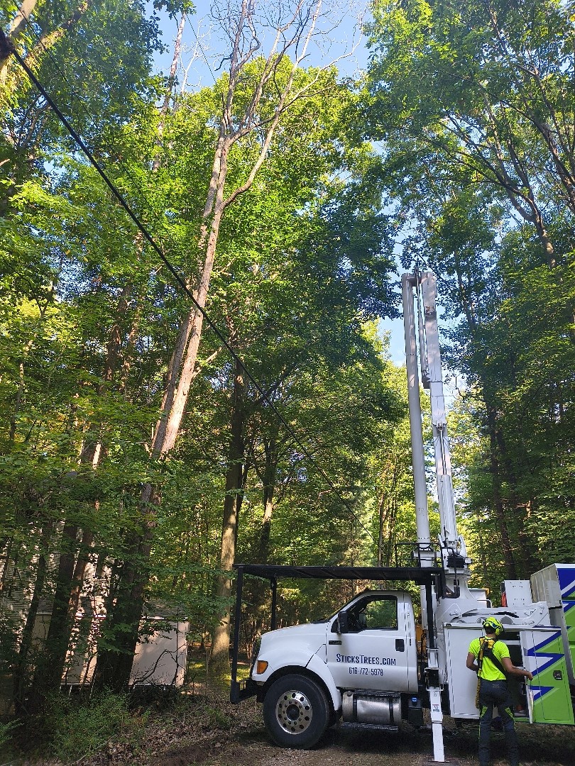 At Sticks, we prioritize the beauty and safety of every property in our area. Our local tree trimming company specializes in a high standard of service so that trees of all sizes and complexities are handled with care. Whether we’re working on a home or business, we’ll use the same quality and precision to maintain your property. As part of our hazardous tree removal services, we offer the following sticking points: